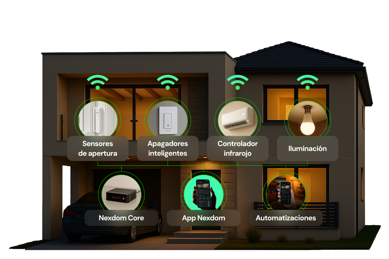Lo mejor es que no tendrás que cambiar lo que ya instalaste: tu Nexdom Core y la App se encargan de que todo funcione en un mismo ecosistema, sin importar si lo agregaste desde el inicio o después.